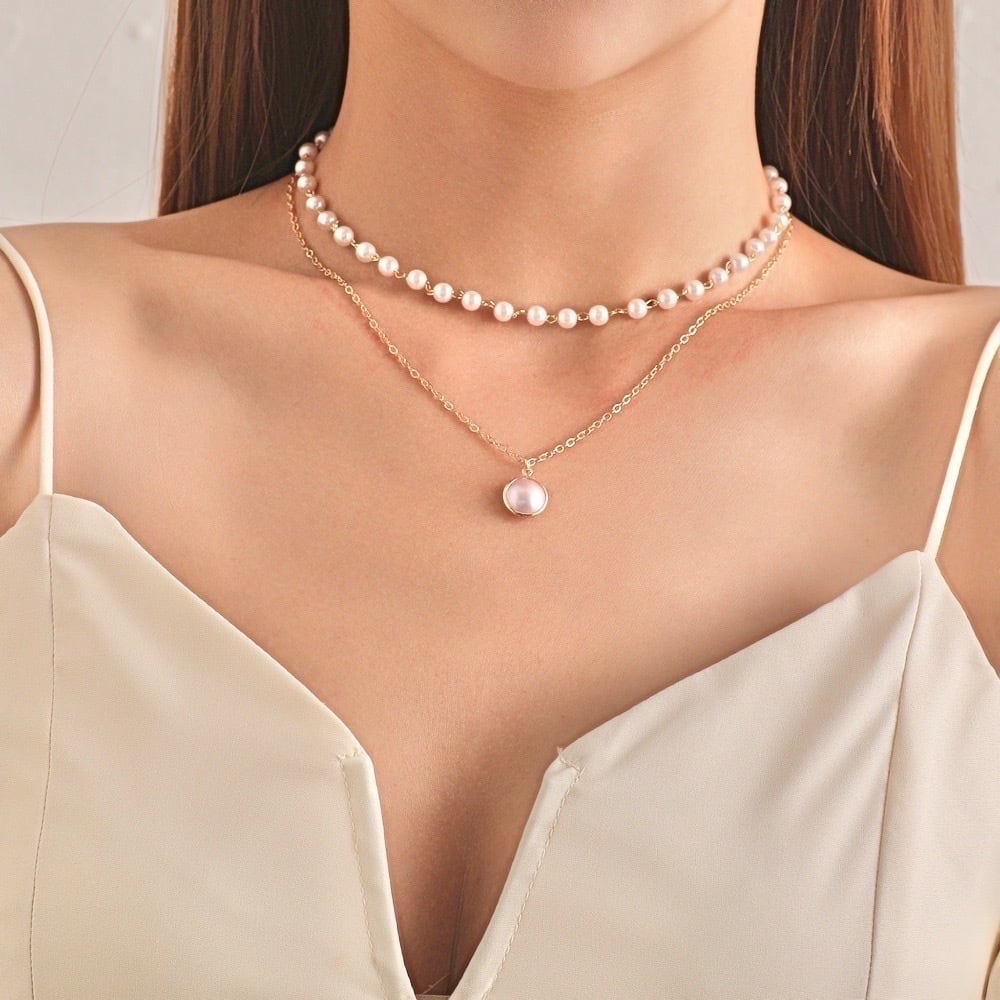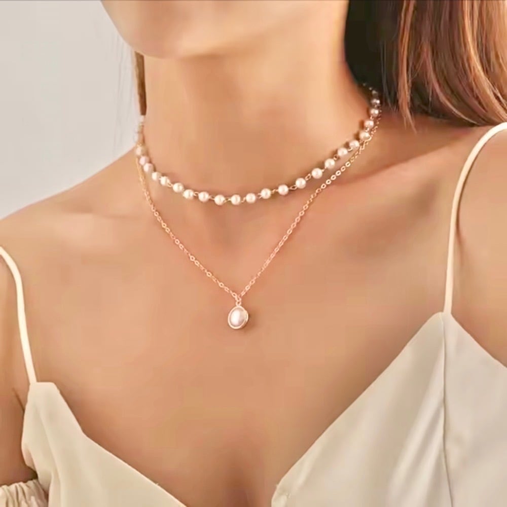 【 国内発送 】2連 パール ネックレス チョーカー アクセサリー ゴールド