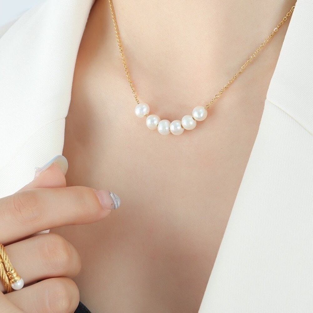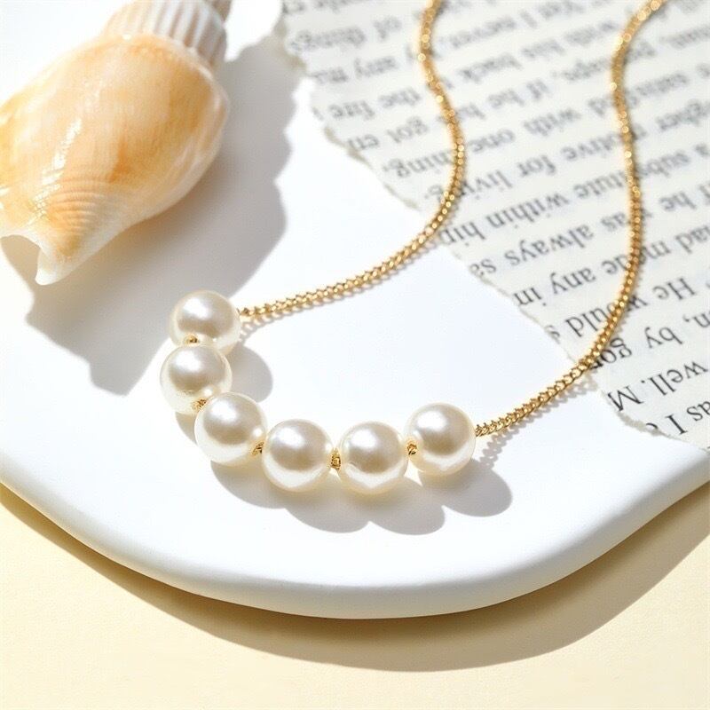 【 国内発送 】6連 パール ペンダント チェーン ネックレス 上品 ゴールド