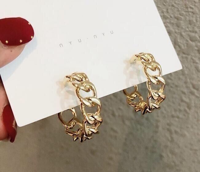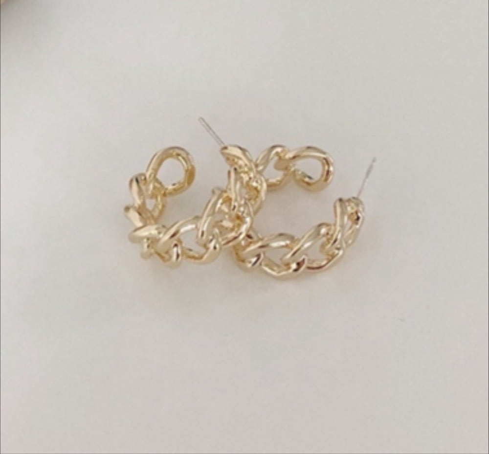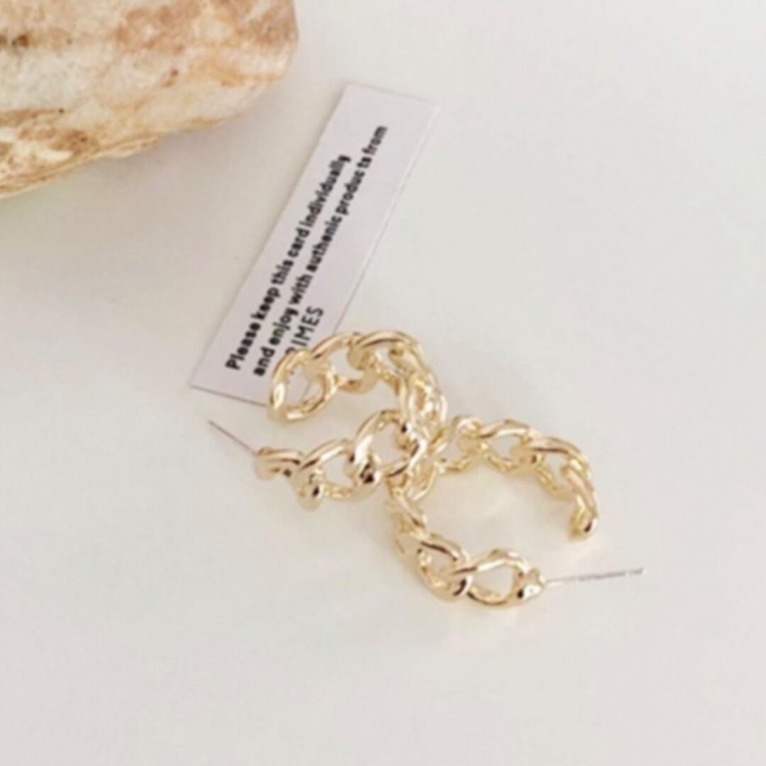 【 国内発送 】ゴールドピアス ツイスト フープ チェーン 925