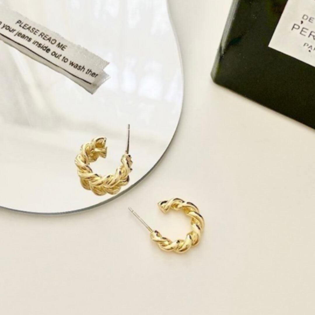 ツイストデザイン のシンプルな ハーフフープピアス