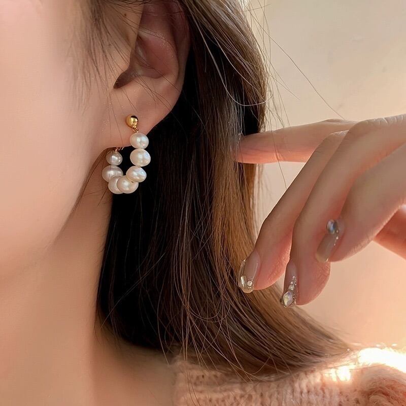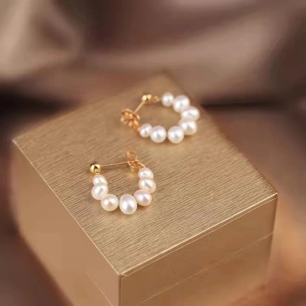 不揃いなパールをフープ状に繋げた、コロンと丸