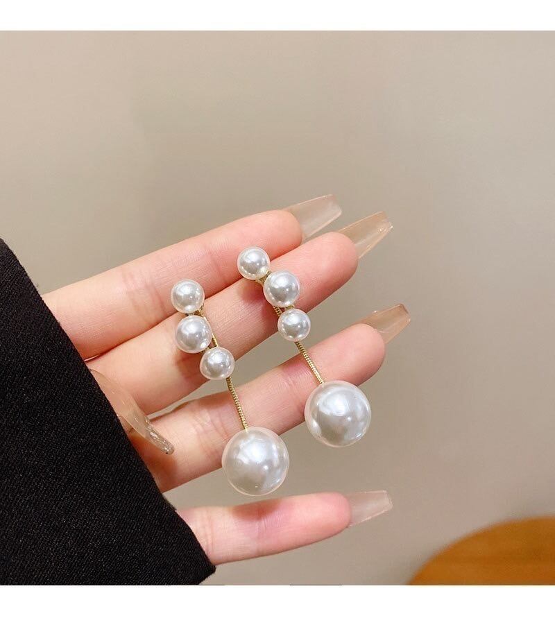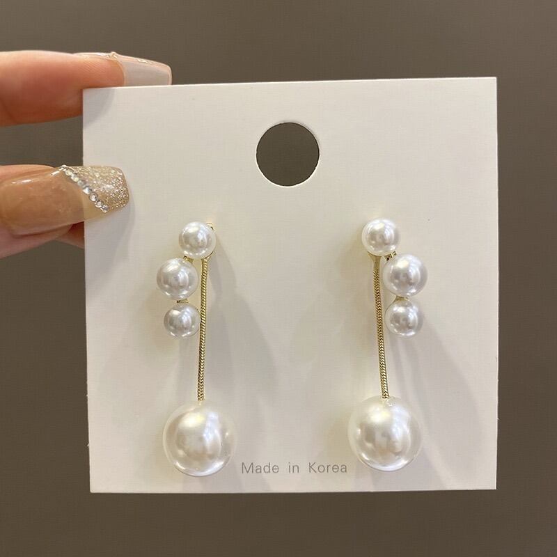 【 国内発送 】 2way バックロング チェーン 3連パール ピアス S925