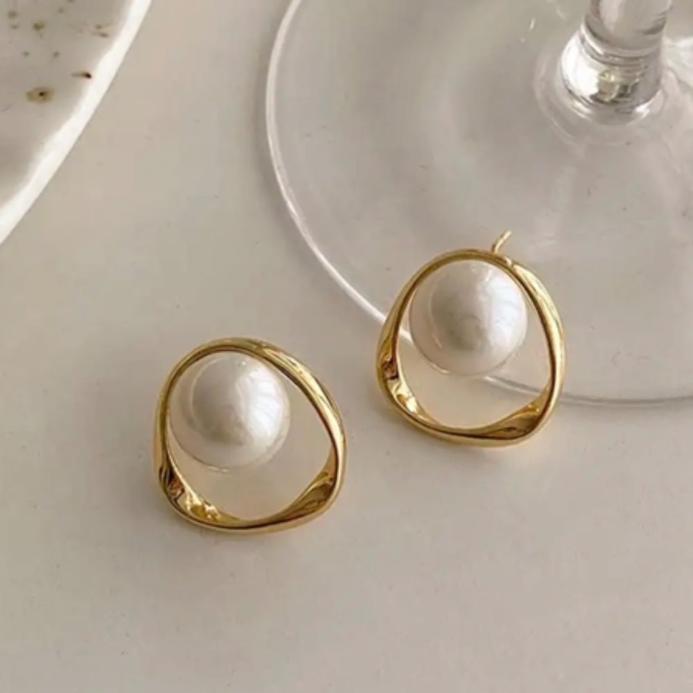 【 国内発送 】 パールピアス ゴールド 大ぶり 一粒パール ピアス 両耳 アクセサリー S925