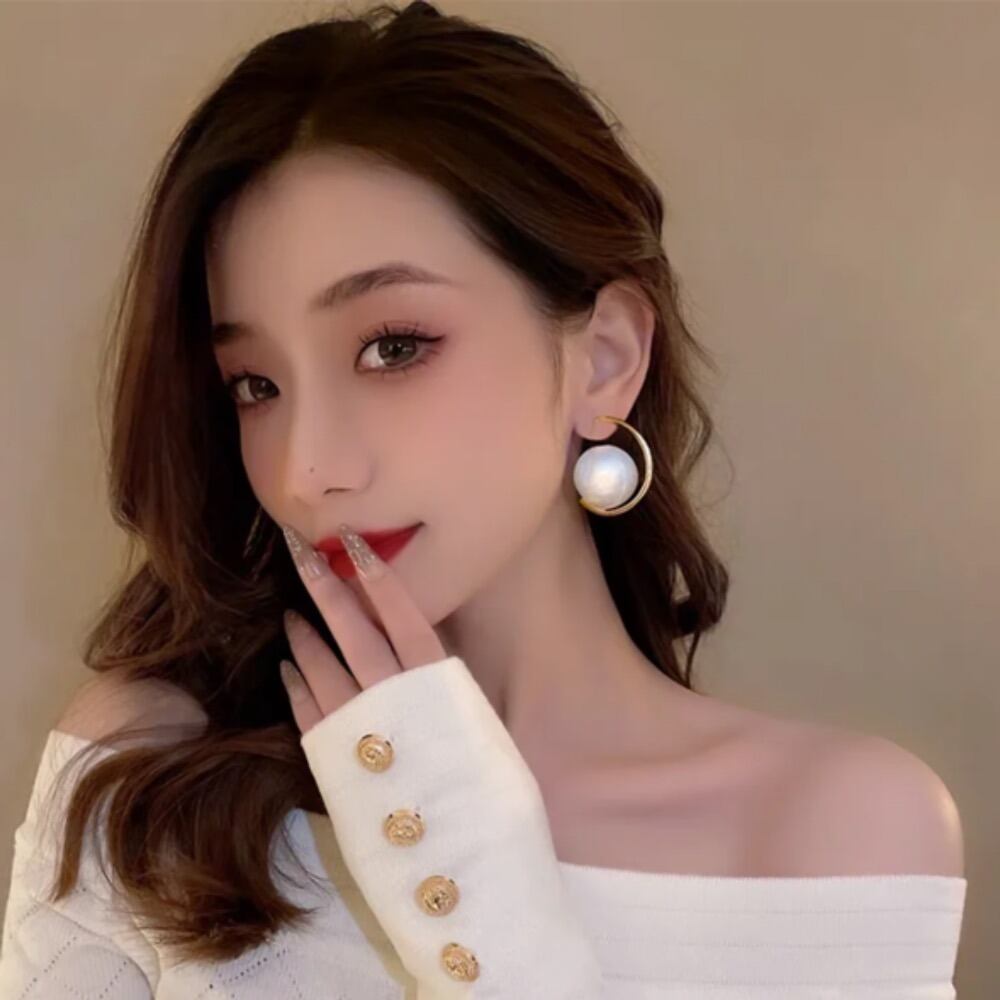 耳元に大きく揺れる一粒のパールが目を惹き、